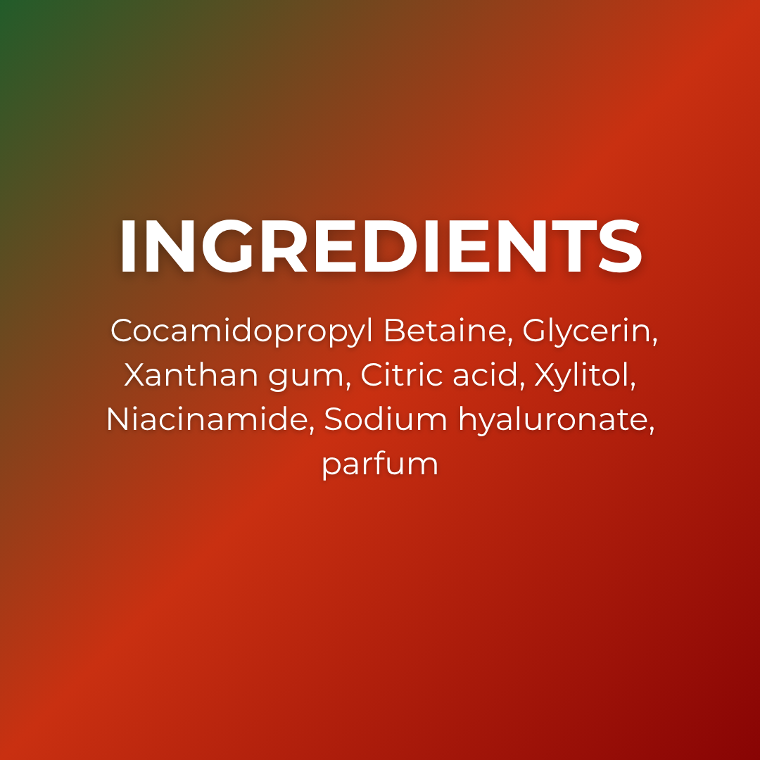 We use only naturally derived ingredients - like glycerin and coco-betaine - that are gentle on your skin and effective at cleansing. You can find the full list of ingredients in our formulation for complete transparency.