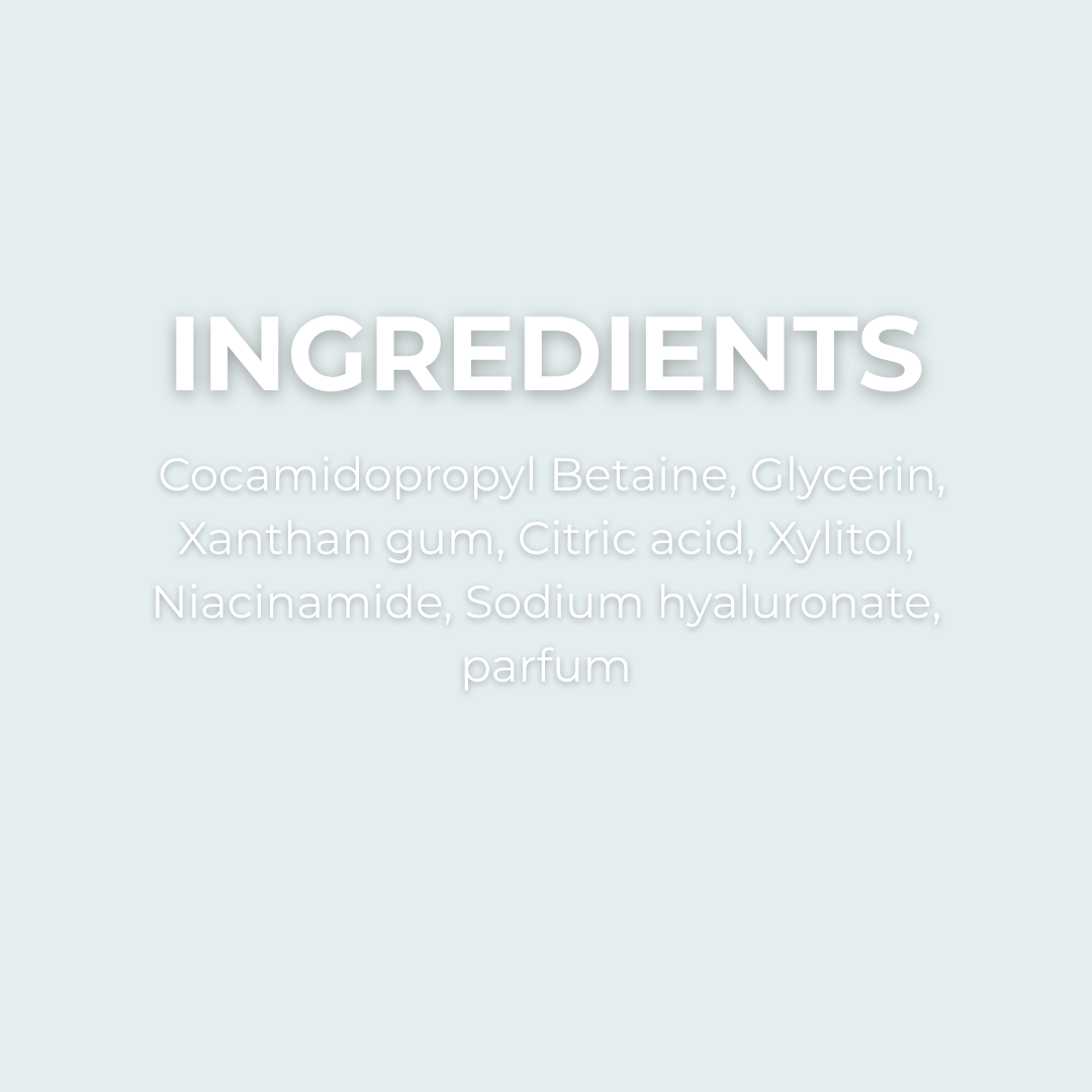We use only naturally derived ingredients - like glycerin and coco-betaine - that are gentle on your skin and effective at cleansing. You can find the full list of ingredients in our formulation for complete transparency.